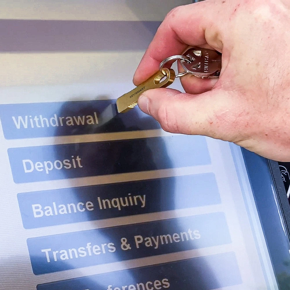 The KeySmart CleanKey Mini Brass Tool is a safe way to avoid touching contaminated surfaces – from touch screens to elevator buttons. This clever mini tool, which fits onto your keyring without adding much bulk, can key in your ATM PIN, press the elevator button for your floor, act as a stylus on touch screens, and more.
