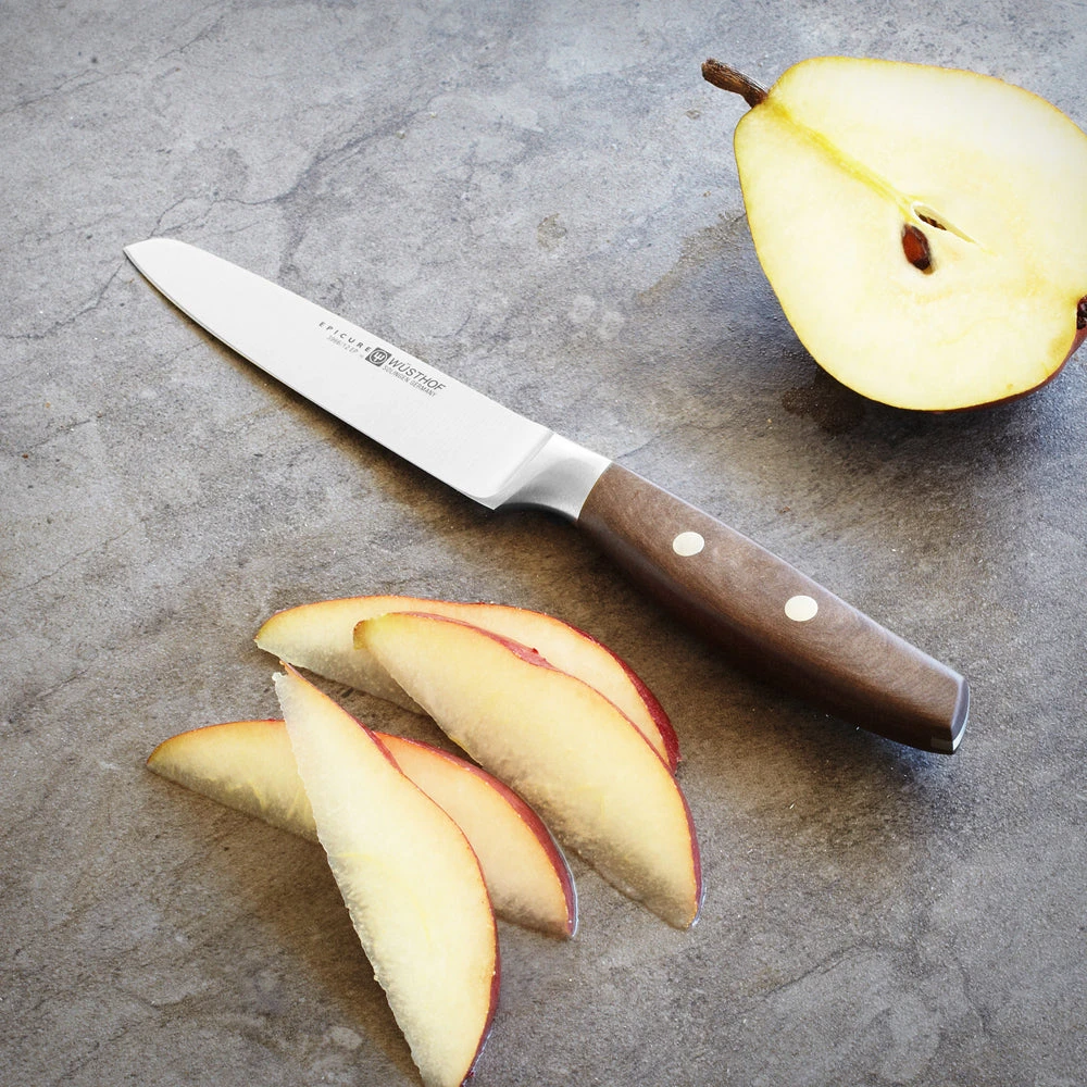 The Wusthof Epicure 4.5″ Utility Knife is the most versatile of all paring knives. This knife is perfect for for mincing shallots, onions and herbs as well as cleaning and cutting vegetables.